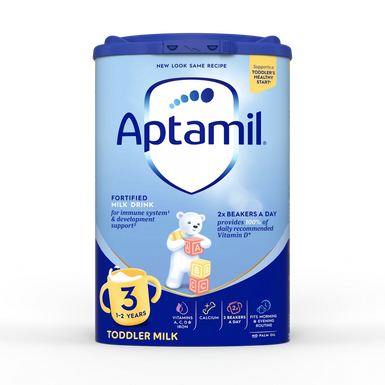 Aptamil 3 Toddler Milk is a scientifically formulated 800g powder designed for toddlers, enriched with Vitamin D and calcium to support immune function and healthy growth. Two daily servings deliver the complete recommended daily amount of Vitamin D your child needs during this crucial developmental stage.